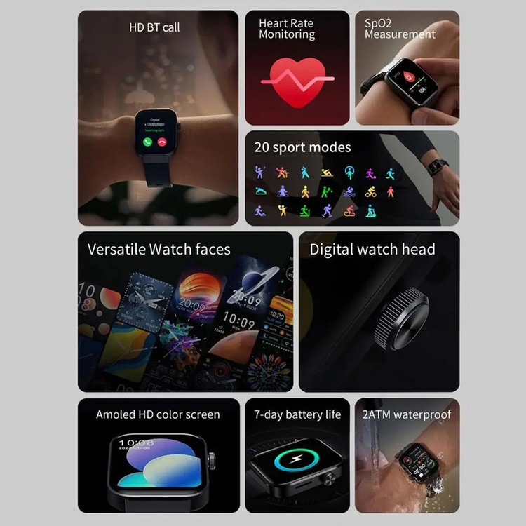 صفحه نمایش رنگی , صفحه نمایش لمسی , کنترل سطح اکسیژن خون , قابلیت مکالمه از طریق بلوتوث