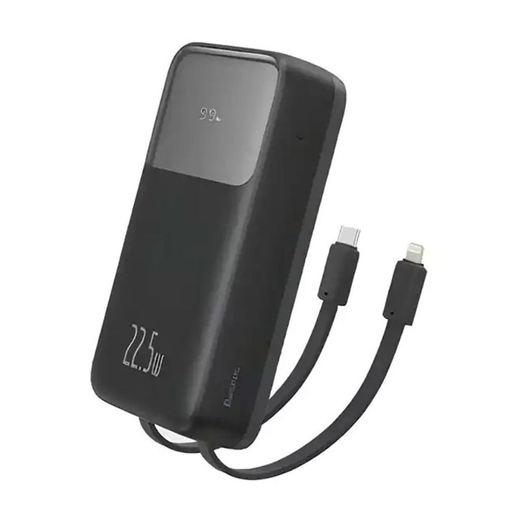 شارژر همراه بیسوس Comet Series ظرفیت 20000 میلی آمپر توان 22.5 وات در دو رنگ مشکی با کد فنی PPMD020101، رنگ سفید با کد فنی PPMD020102، بنفش و آبی در ابعاد 35.9×70×132.3 میلیمتر و وزن 360 گرم تولید شده و گزینه ایدهآلی برای شارژ همزمان 4 دستگاه می باشد. این پاوربانک با کابلهای متصل به پاوربانک (تایپ سی و لایتنینگ)، با طراحی زیبا و مدرن، نه تنها عملکرد عالی دارد بلکه به زیبایی بصری نیز اهمیت داده است. بدنه این پاوربانک از مواد با کیفیت ساخته شده است که دوام و استحکام بالایی دارد. همچنین، طراحی جمع و جور و سبک آن، حمل و نقل آن را آسان میکند و شما میتوانید آن را به راحتی در کیف یا جیب خود قرار دهید. پاوربانک باسئوس مدل Baseus Comet Series PPMD20 مجهز به کابل USB-C (22.5 واتی) و فناوری شارژ فوق سریع انحصاری Baseus است. علاوه بر کابل USB-C، یک کابل لایتنینگ نیز وجود دارد که با تمام دستگاههای دارای این پورت سازگار است. پاوربانک بیسوس به شما امکان میدهد چهار دستگاه را به طور همزمان از طریق کابلهای همراه و پورتها شارژ کنید. پاوربانک باسئوس Comet را از طریق درگاه USB-C میتوانید در حدود 2 ساعت به طور کامل شارژ کنید. به علاوه، یک صفحه نمایش LED داخلی درصد باقیمانده باتری را نشان میدهد و ویژگیهای ایمنی پاوربانک باسئوس از شما در برابر مسائلی مانند جریان بیش از حد و ولتاژ اضافی محافظت میکند. این پاوربانک با کیفیت عالی و استانداردهای بالا، برای نیاز روزانهی شما به شارژ بسیار کارآمد است. نمایشگر دیجیتال هوشمند در هر زمان سطح باتری را به شما نشان میدهد. پورت USB-C از شارژ سریع دو طرفه پشتیبانی میکند و پاوربانک در مدت زمان کمی بطور کامل شارژ میشود. پاوربانک باسئوس مدل Baseus Comet Series دارای حالت Small-Current است و از شارژ دستگاهها با جریان کم مانند هدفونهای بی سیم، ساعت، مسواک برقی و… پشتیبانی میکند. همچنین این پاوربانک با کابل همراه لایتنینگ و USB-C، بهترین پاوربانک برای آیفون و همه گوشیهای اندرویدی است. ضمنا از تراشههای هوشمند برای جلوگیری از شارژ بیش از حد، ولتاژ و جریان اضافه و اتصال کوتاه استفاده میکند.
