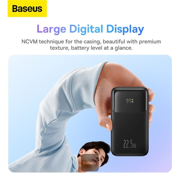 بیسوس در سری Comet توجه ویژهای به طراحی داشته است. بدنه این پاوربانک از مواد مقاوم ABS+PC ساخته شده و در برابر خطوخش و ضربه مقاومت خوبی دارد. طراحی باریک و ارگونومیک آن باعث میشود با وجود ظرفیت بالا، حمل آن راحت باشد. نمایشگر LED روی بدنه میزان شارژ باقیمانده را به صورت دقیق نشان میدهد و این ویژگی برای مدیریت مصرف انرژی بسیار کاربردی است.